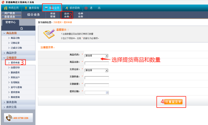 登錄客戶端---綜合業務---直供業務---提貨申請---注冊提貨單