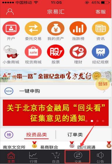 (2)步驟二:進(jìn)入“宗易匯”界面后點擊“交易”