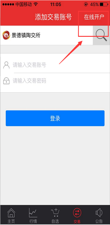 (8)步驟八:注冊“交易賬戶”成功后,返回步驟三,搜索“景德鎮(zhèn)陶交所”并輸入交易賬戶進(jìn)行登錄。